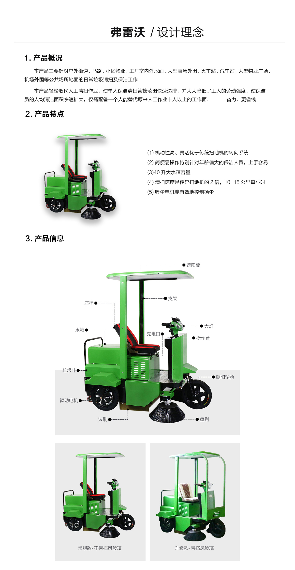 產品分類:駕駛式掃地機(可加裝擋風玻璃)產品特點:1、駕駛式掃地機FL1650配備出口型免維護電瓶,區別于市面上其他電動掃地機,其智能型充電機能有效延長電瓶使用壽命,可使連續工作時間更長。2、操作簡單、便捷,對于年齡較大的保潔人員也可以無需通過特別培訓即可上崗使用。3、雙邊刷設計,顯著提升清掃效率,完成1000㎡的地面清掃工作僅需5分鐘。4、配備優良吸塵電機和曬水系統,能夠在清掃地面灰塵時灑水,有效避免揚塵的產生。適用環境:戶外街道、小區物業、工廠車間、商場、車間、機場、學校、醫院、公園、廣場等地。